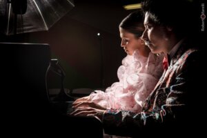 E.S. La registrazione è avvenuta nel leggendario studio Artesuono di Stefano Amerio. Grazie alla maestria, disponibilità e professionalità di Stefano, unite a strumenti d’eccezione come il Fazioli gran coda di cui dispone, dobbiamo ammettere che fin da subito ci siamo trovati a nostro agio. Sia io sia Federica siamo fortunati possessori di una collezione di sei pianoforti a coda di ottimo livello messa insieme nel corso degli anni ed è sempre difficile trovare (specialmente per noi pianisti) fuori dalla propria casa una situazione adeguata. Artesuono è forse l’unico posto per noi in cui fin da quando inizi a suonare ti senti come a casa, é stato facile in questo contesto ritrovare il nostro suono e sapere che eravamo sulla strada giusta. Anche in questo caso ed anche per Federica, quello che può ascoltare il pubblico è frutto di pochissime take, spesso o la prima o la seconda. La leggenda vuole che i pianisti classici necessitino di molte registrazioni ed editing per trovare un corrispettivo sonoro che li soddisfi, con Federica abbiamo puntato alla verità sonora e a fare sì che ciò che si ascolti non abbia nulla di artefatto ma che possa cogliere la spontaneità cosi come quando si improvvisa.