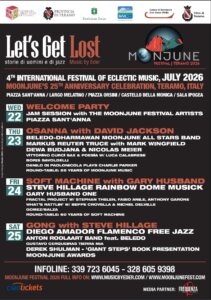 Uno straordinario cartellone internazionale per uno dei principali festival italiani ed europei dell’estate 2026: presentato dall’associazione culturale Music By Eder ETS, The 4th MoonJune Festival nell’ambito di LET’S GET LOST- storia di uomini e di jazz- Summer 2026, si preannuncia come uno degli eventi di punta in Italia e in Europa dell’estate. Basta pensare alla presenza di giganti come Soft Machine con Gary Husband, Gong con Steve Hillage, Osanna con David Jackson e tantissimi altri in una fitta quattro giorni di musica a Teramo. Rock, jazz, fusion, avant-rock e progressive in una location suggestiva, secondo la filosofia che MoonJune Music da 25 anni porta avanti: supportare la musica internazionale che trascende stili e generi all’interno di un continuum musicale progressivo ed evolutivo che esplora i confini del jazz, del rock, dell’avanguardia, dell’etno, dell’ignoto e di tutto ciò che sta nel mezzo.