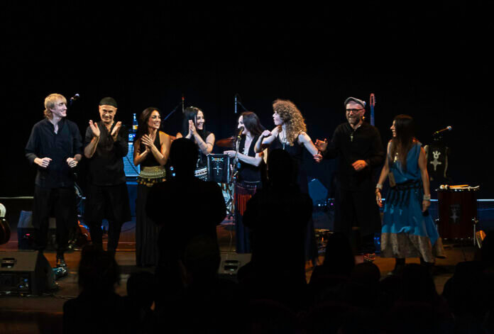 Il concerto si è rivelato un vero e proprio viaggio iniziatico, un’esperienza sensoriale e spirituale in cui ogni brano è consacrato a una Dea, al suo mito e al suo potere primordiale: Inanna, Iside, Ecate, Tanit, Afrodite, Nut, Isis, Beira e Lilith, la più maltrattata delle Dee. Dietro ogni nome si cela un’unica essenza, la Grande Dea Primordiale, custode di vita, morte e mistero. Fondamentale il contributo di Antonio Forcione, chitarrista di fama internazionale, che ha riarrangiato l’intero progetto. La sua chitarra, usata come uno sciamano usa il proprio tamburo, dialogava con la voce di Agadez creando passaggi sonori profondi, ipnotici e di grande intensità emotiva. Sul palco, insieme a loro, un ensemble che amplifica la dimensione tribale e corale del progetto: Natalia Bacalov (violoncello e voce), Martin Sevrin (basso), Lucrezia Testa Iannilli (bodhrán), Simone Pulvano (percussioni) e Claudia Ugenti (voce e tamburi). Un live immersivo di circa un’ora e mezza, accolto da lunghi applausi.
